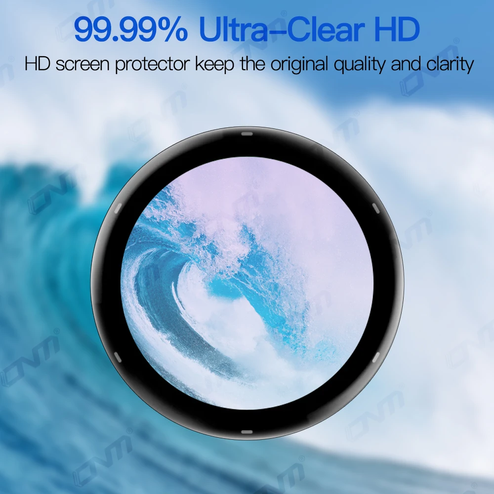 Bubble free installation and no sticky residue removal. Simple instructions allow for quick and hassle free installation. Inside adhesive glue can make screen protector film fit watch well, and the black part can stop air and dust into the gap between screen protector and smart watch.