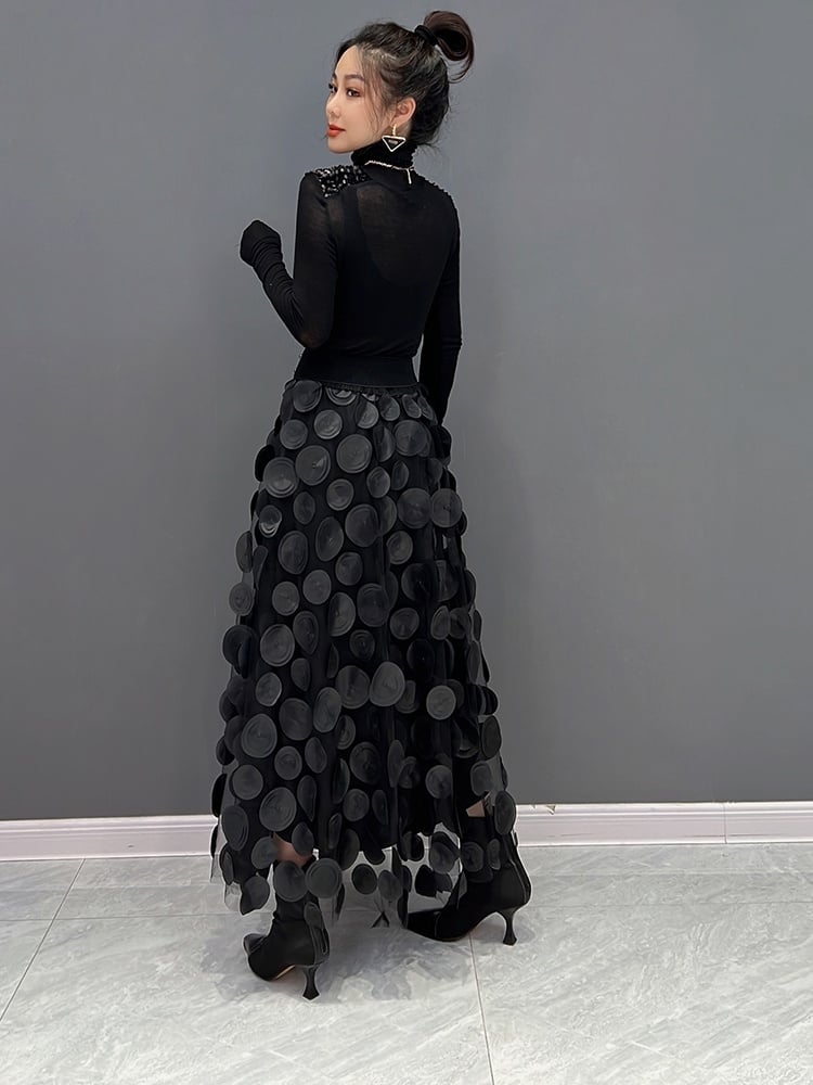 3D Polka Dot Black Mesh Skirt