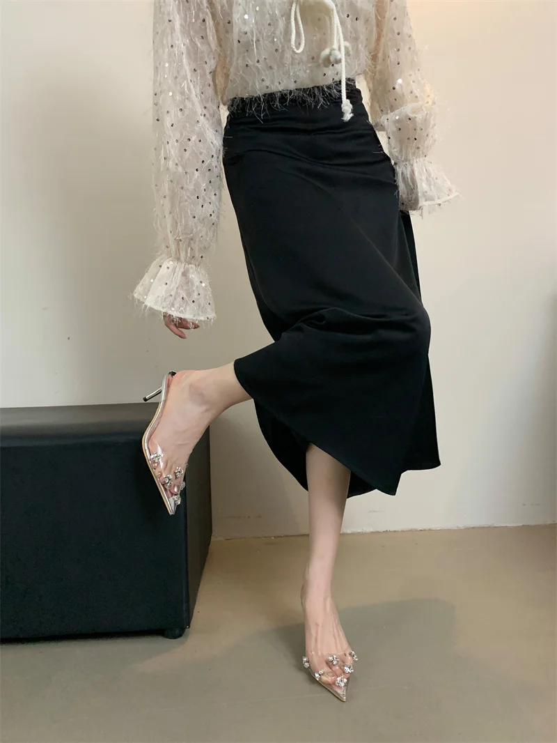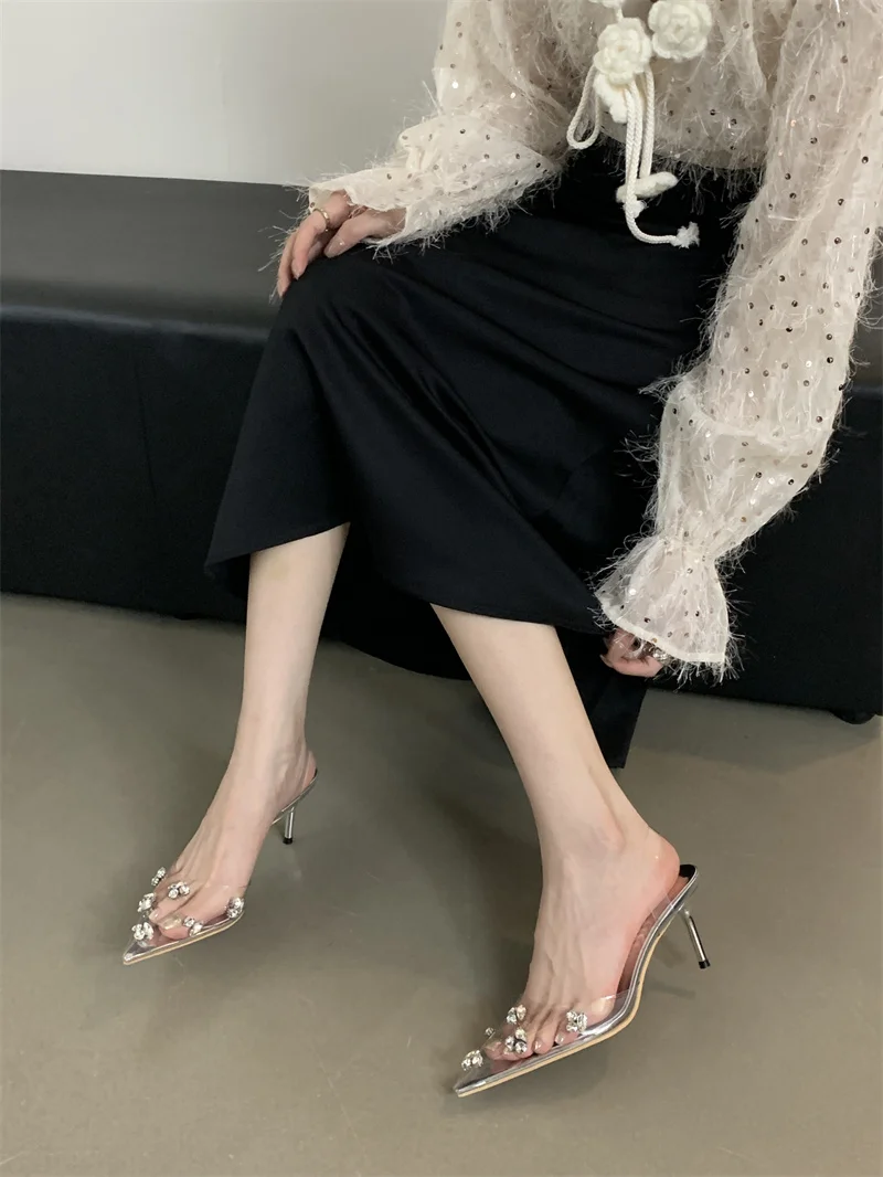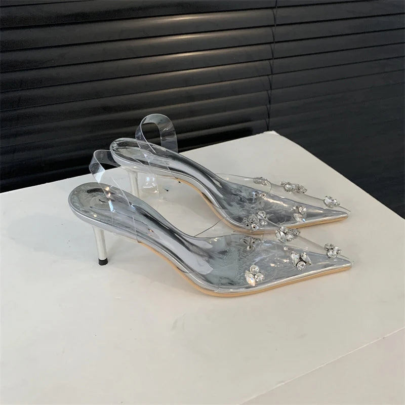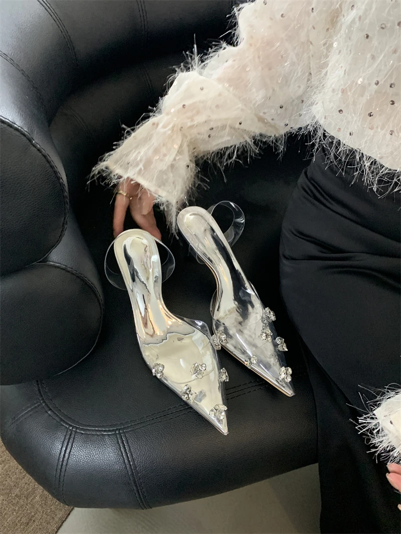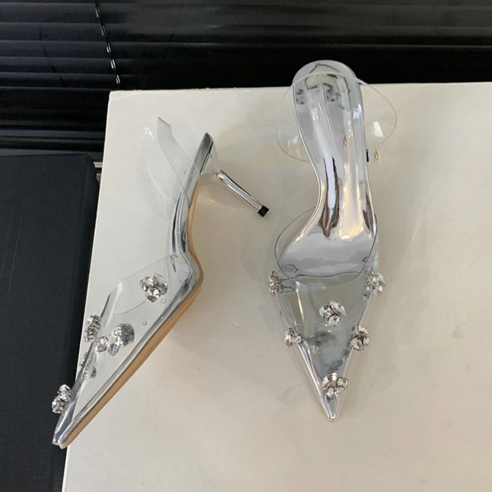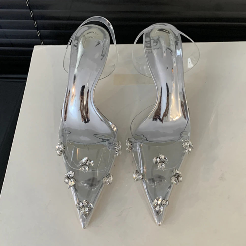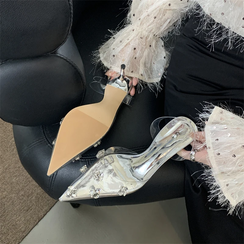 Aneikeh PVC Summer Jelly Shoes Woman Bling Pointed Toe Rome Shallow String Bead Pumps Women Sandals Party Fashion Sweet lip-On