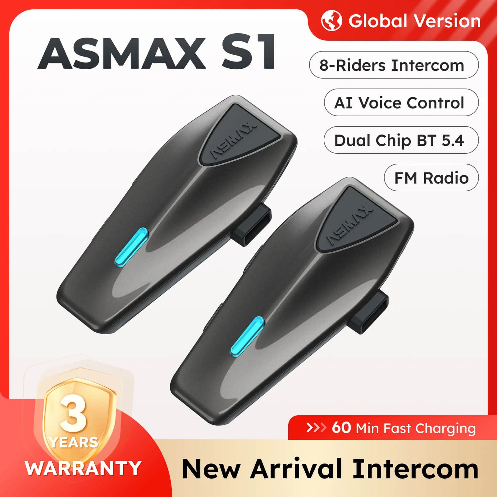 ASMAX S1 Motorcycle Headset, 8 Rider Mesh Intercom Motorcycle, Voice Control, FM/60 Minute Quick Charge/Magnetic Mount/Universal Pairing/Noise Cancellation