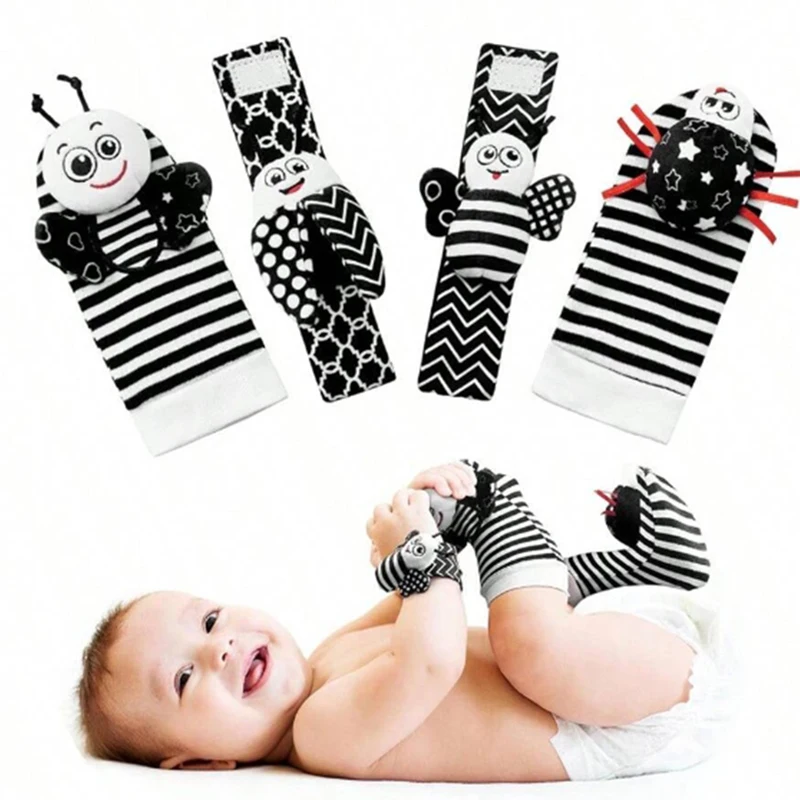 Baby Toys 0-6 Months, Baby Foot Finders Wrist Rattles for Infants Newborn Toys, Blackand White Sensory Toys, Rattle Socks Hand and Foot Rattles for 0-3 0-12 Months Birthday Gifts