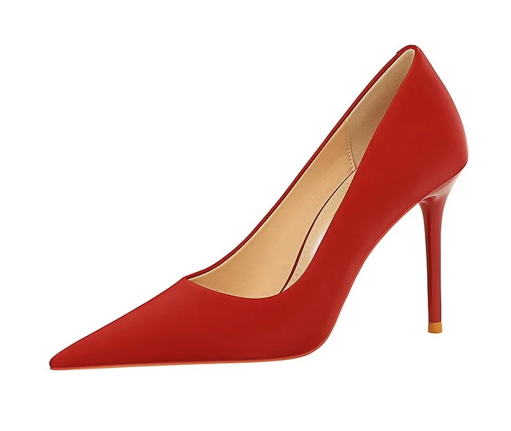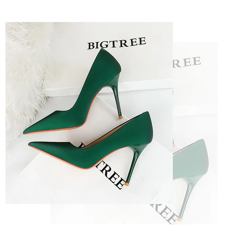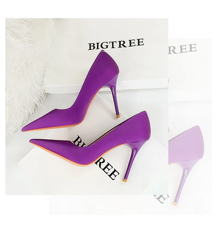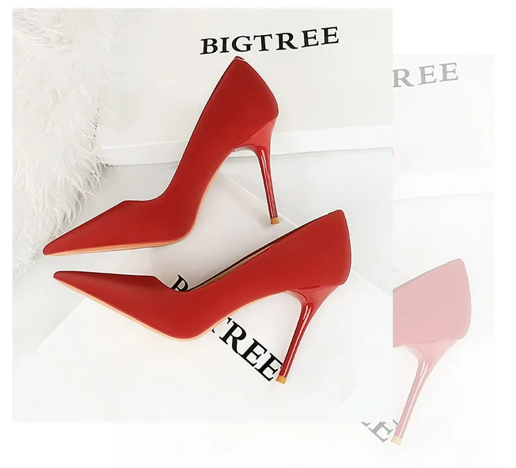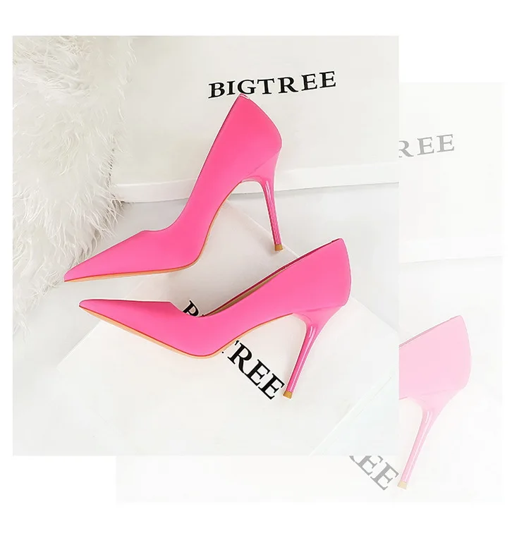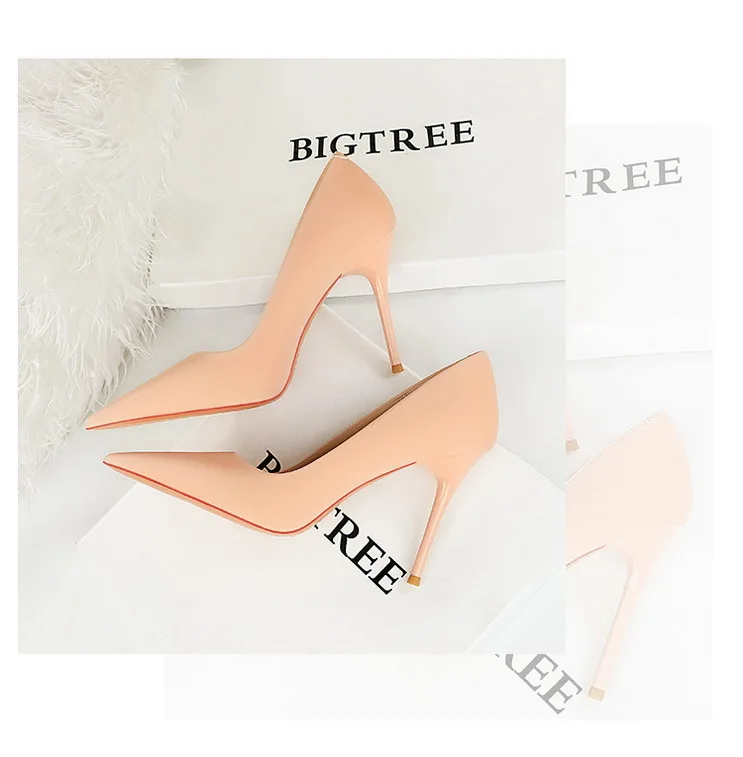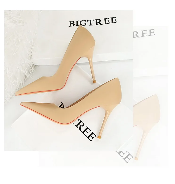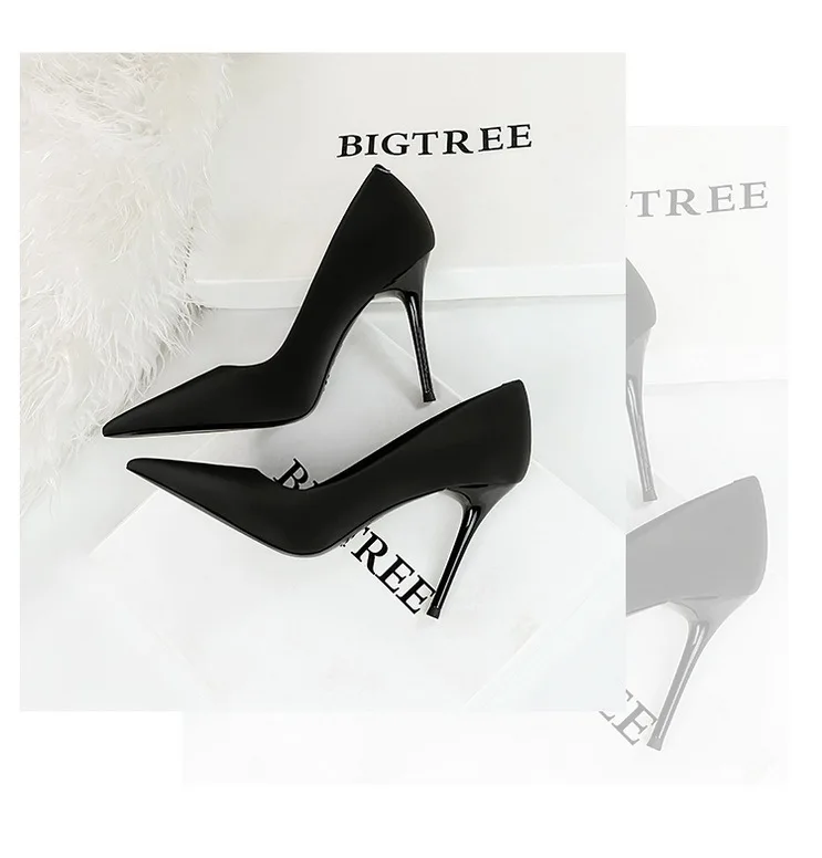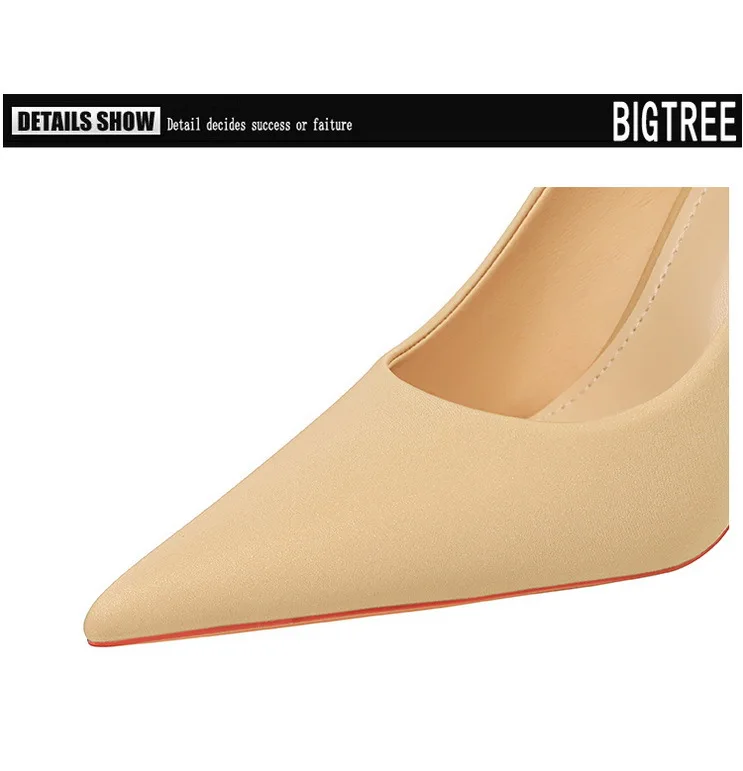 BIGTREE Autumn Fashion Simple Pedicure Slimming Super Woman Pumps Heels Shallow Mouth Strippe Pointed Sexy Nightclub Shoes