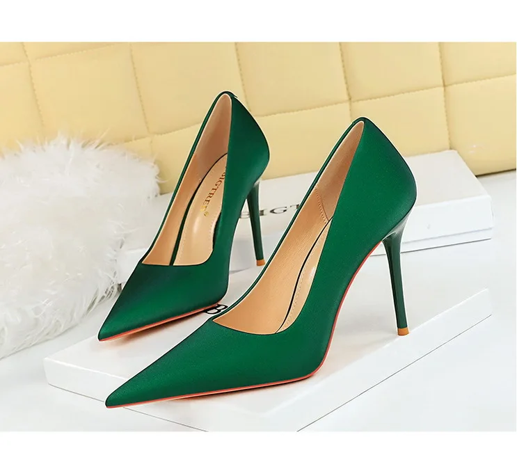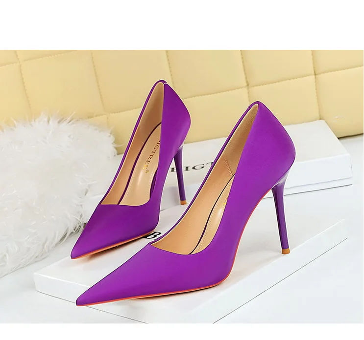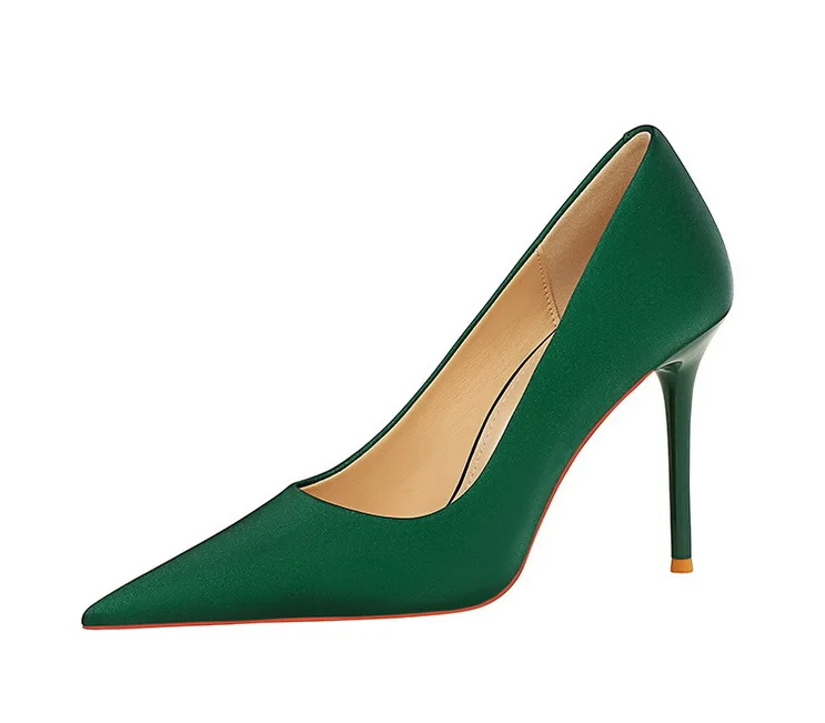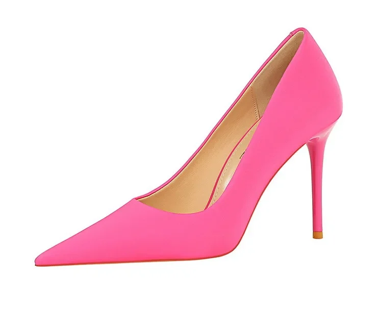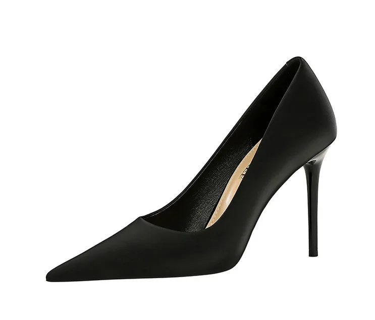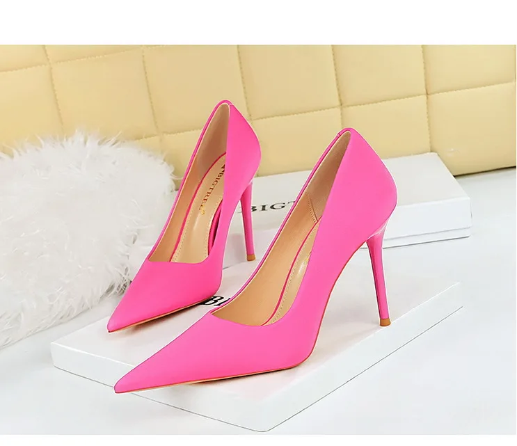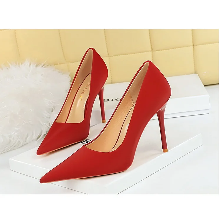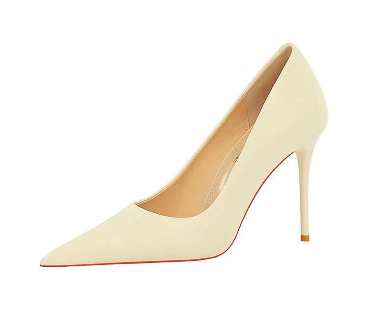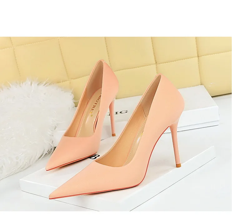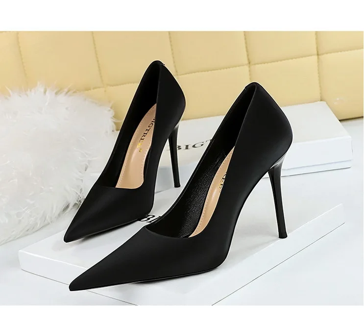 BIGTREE Autumn Fashion Simple Pedicure Slimming Super Woman Pumps Heels Shallow Mouth Strippe Pointed Sexy Nightclub Shoes