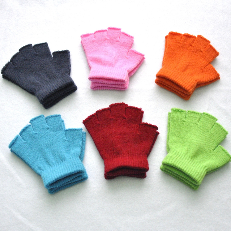 Children's Solid Color Warm Half-Finger Gloves