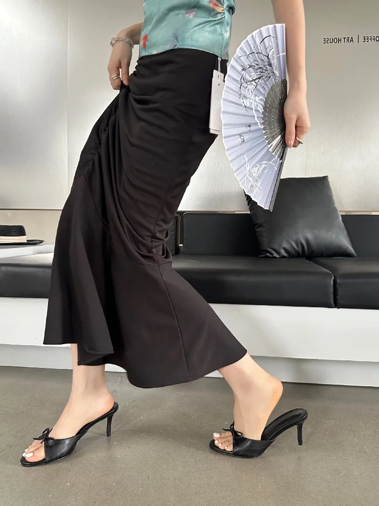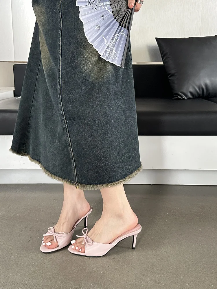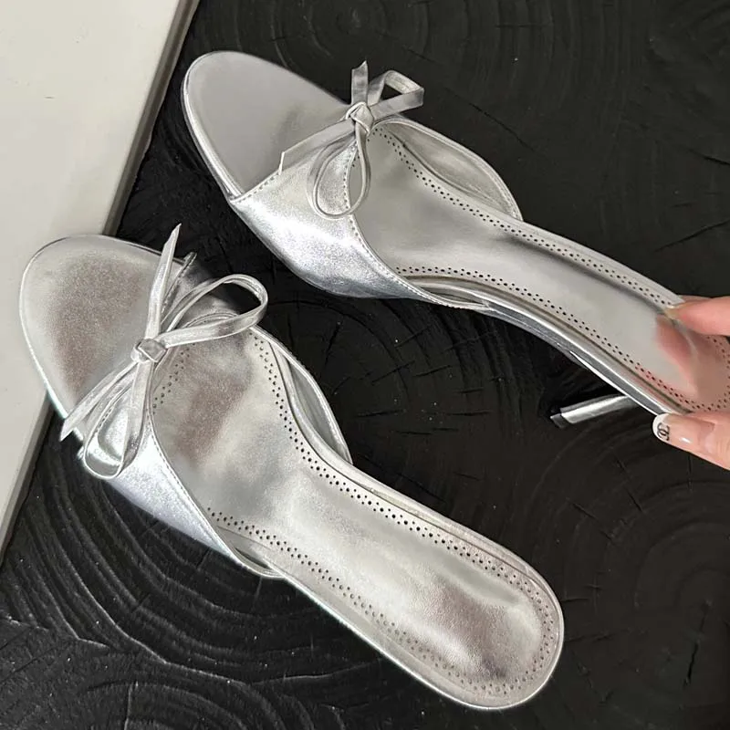 Eilyken Butterfly-knot Peep Toe Women Slippers Fashion Thin Heels Sandals Casual Party Dress Slide Summer Shoes