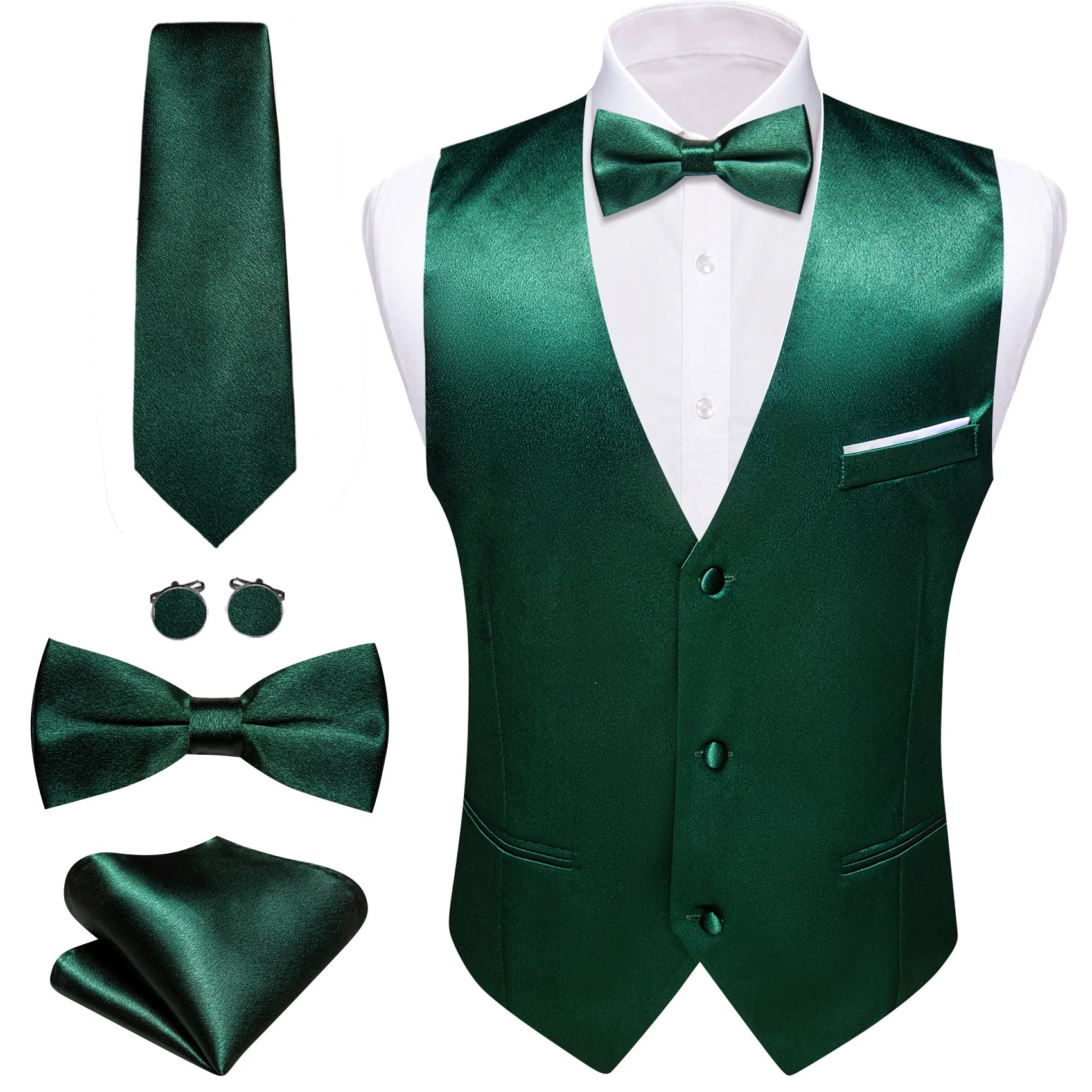 Elegant Vest for Men Pink Solid Satin Waistcoat Tie Bowtie Hanky Set Sleeveless Jacket Wedding Formal Male Gilet Suit Barry Wang