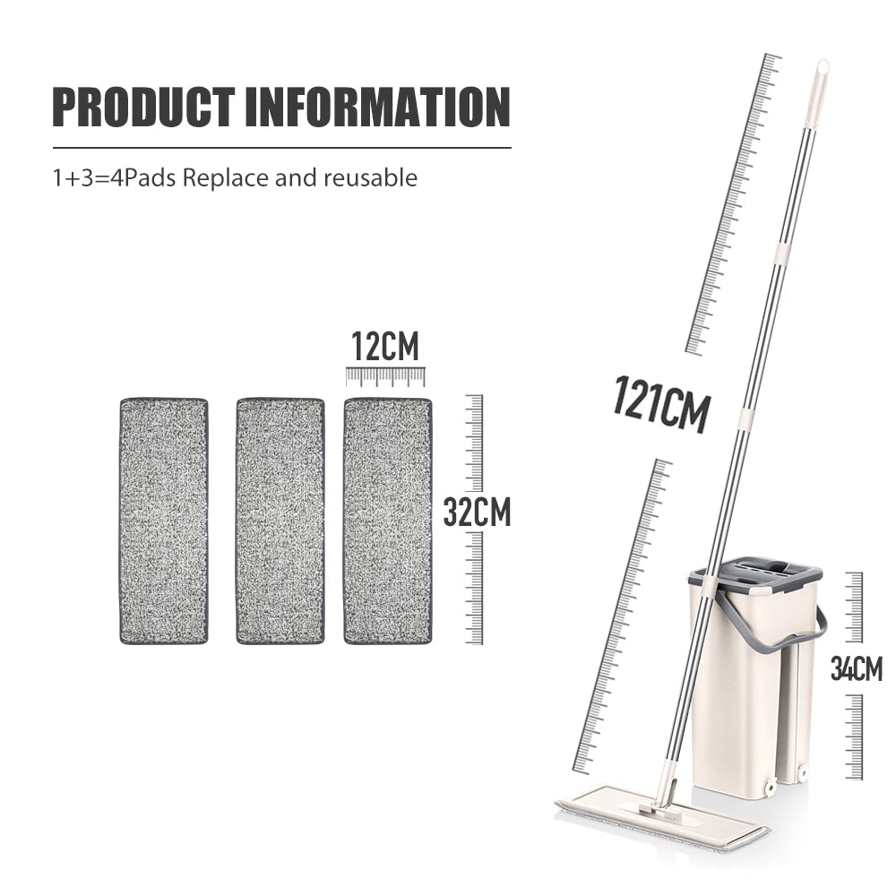 Hand Free Flat Floor Mop And Bucket Set For Professional Home Floor Cleaning System With Washable Microfiber Pads For Hardwood