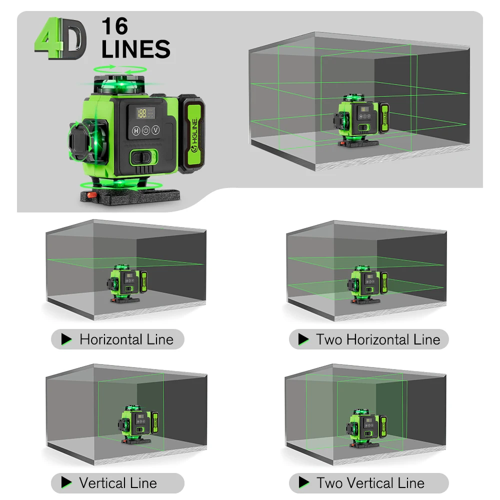 HGLINE 16 Lines Laser Level APP Remote Control Horizontal Vertical Levels Machine Power Display Laser Leveling With 100cm Tripod