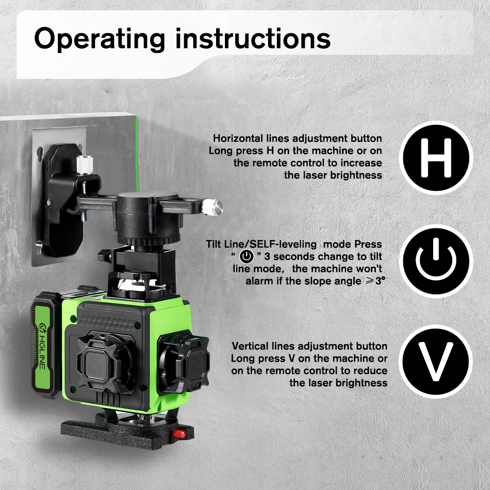 -2 Types of control modes: Mobile APP remote control and Bluetooth remote control, you can select the lines you needed by the remoter when you are inconvenient to move the laser level.