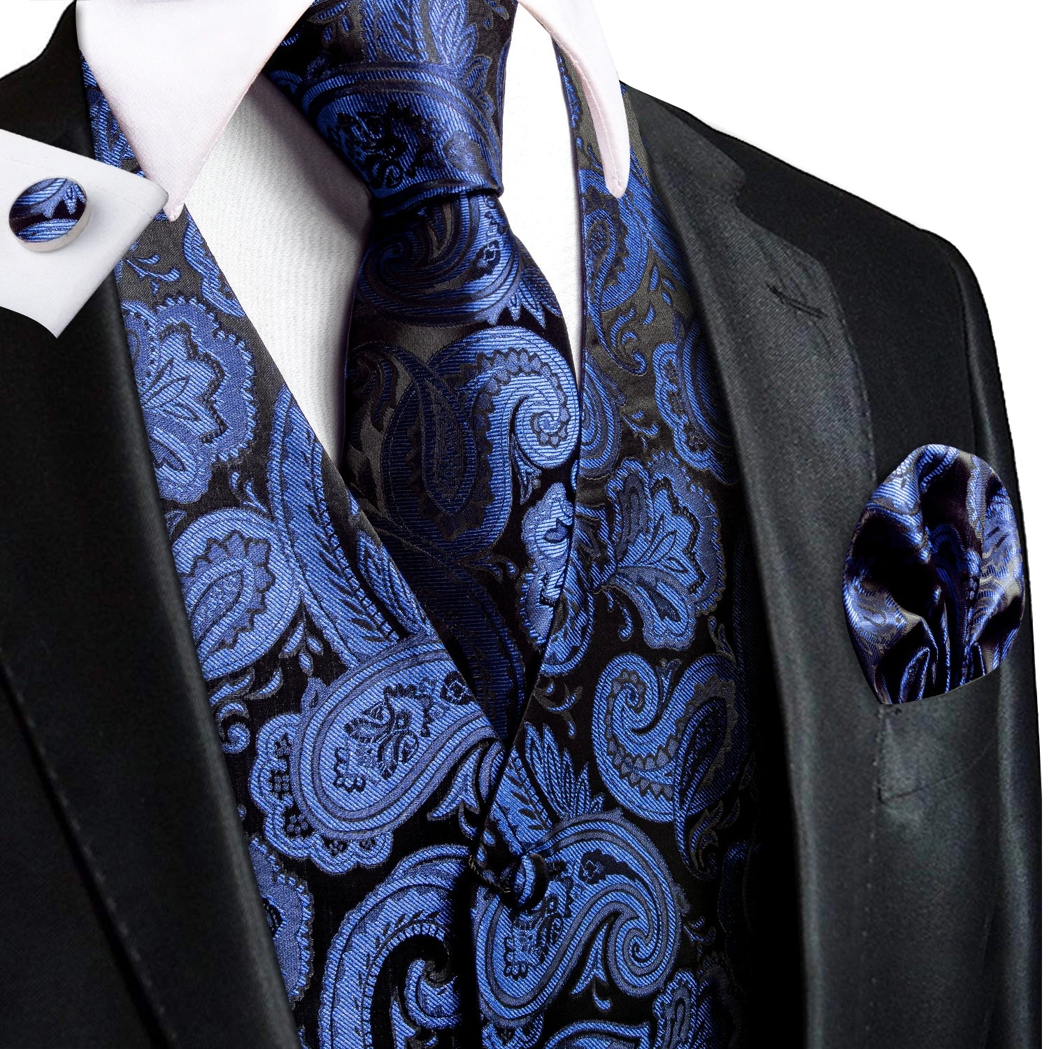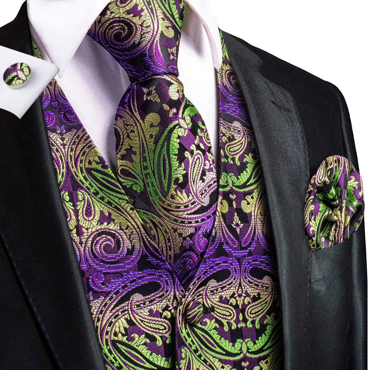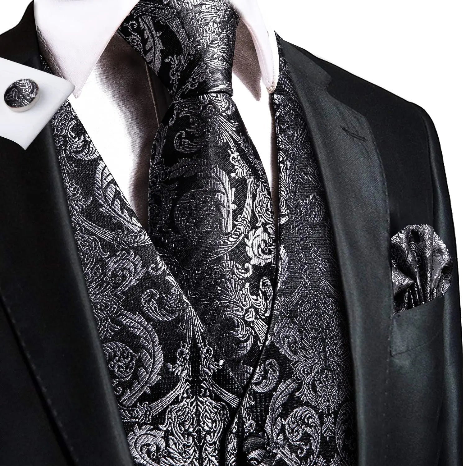 Hi-Tie Silk Ivory Beige Champagne Gold Mens Vests Tie Hankerchief Cufflinks Set Jacquard Vine Waistcoat for Men Suit Dress