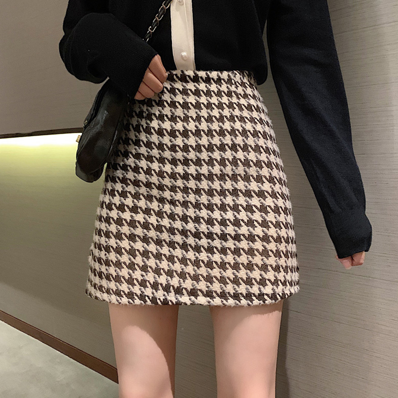 Elevate your wardrobe with our stunning Houndstooth Check Woolen Skirt, the perfect blend of style and comfort. This all-match A-line skirt is designed to make you stand out, whether you're dressing up for a night out or keeping it casual for a day in the city.