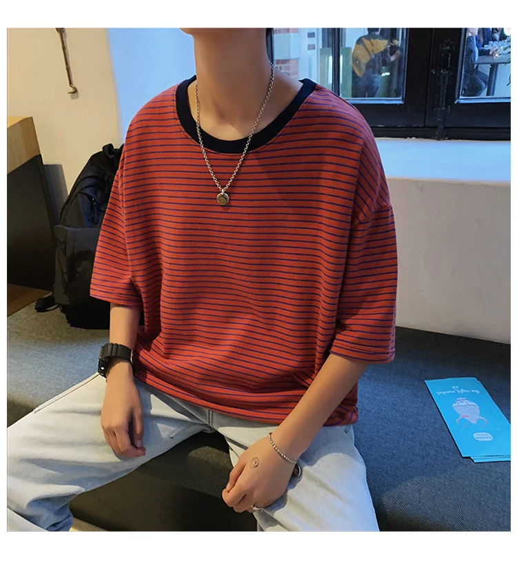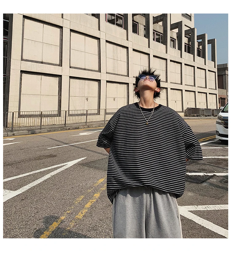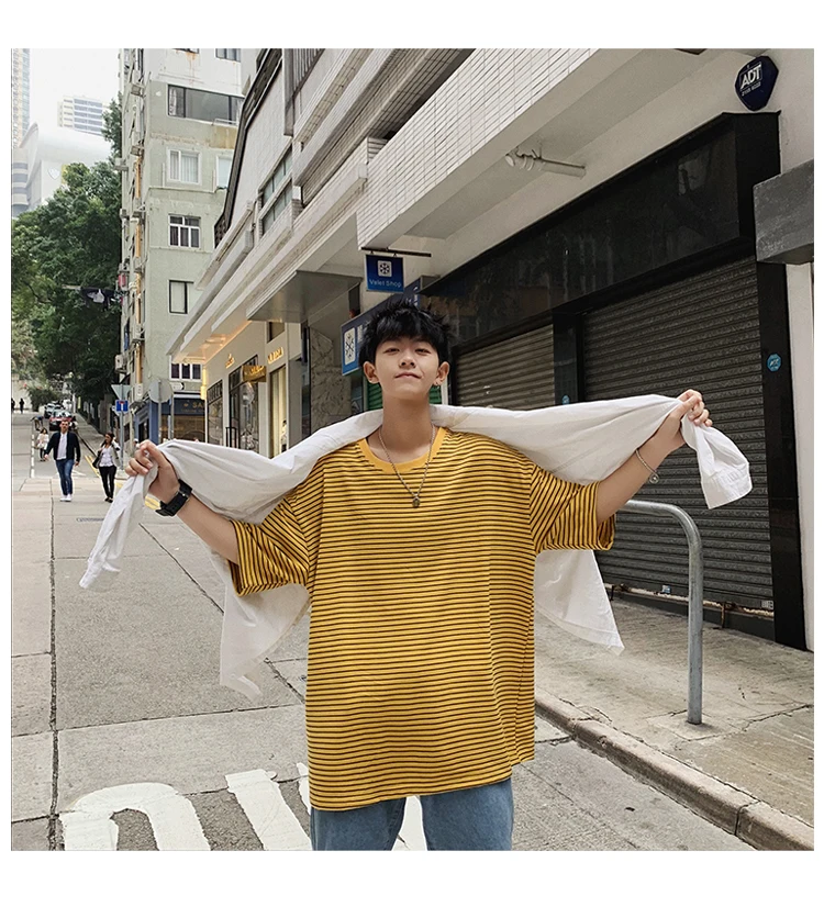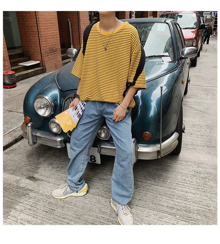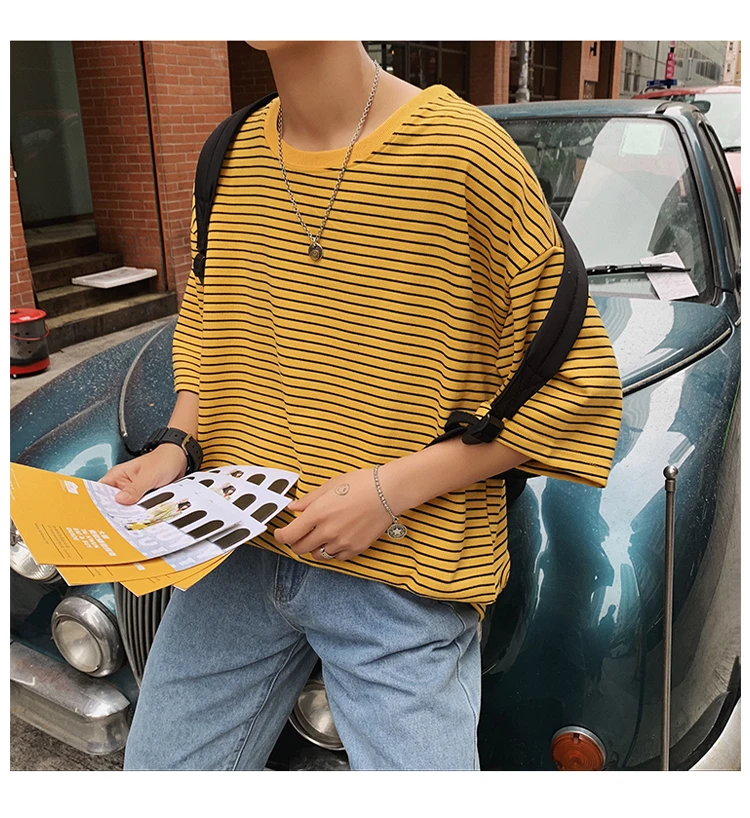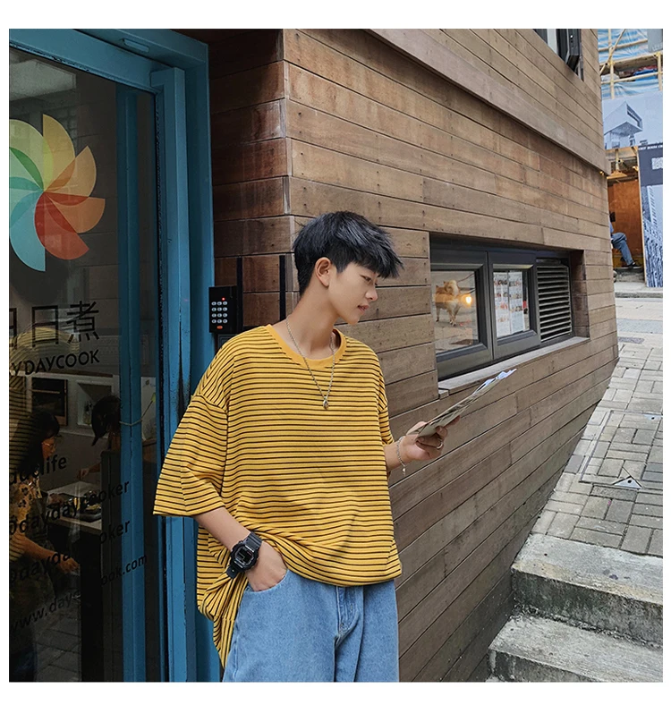 LAPPSTER Men Oversized Striped Tshirts 2023 Harajuku Cotton Tops Mens Colorful Yellow Tshirts Couple Streetwear T-shirts Tees