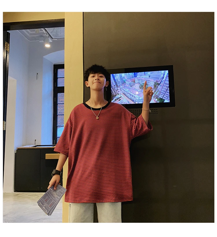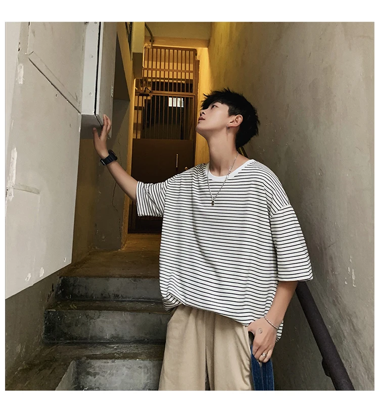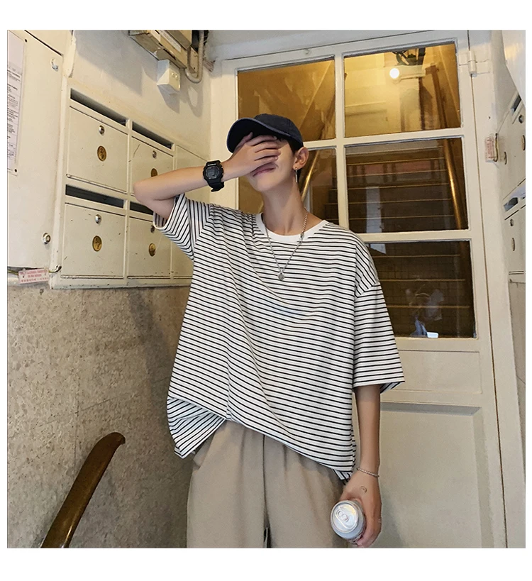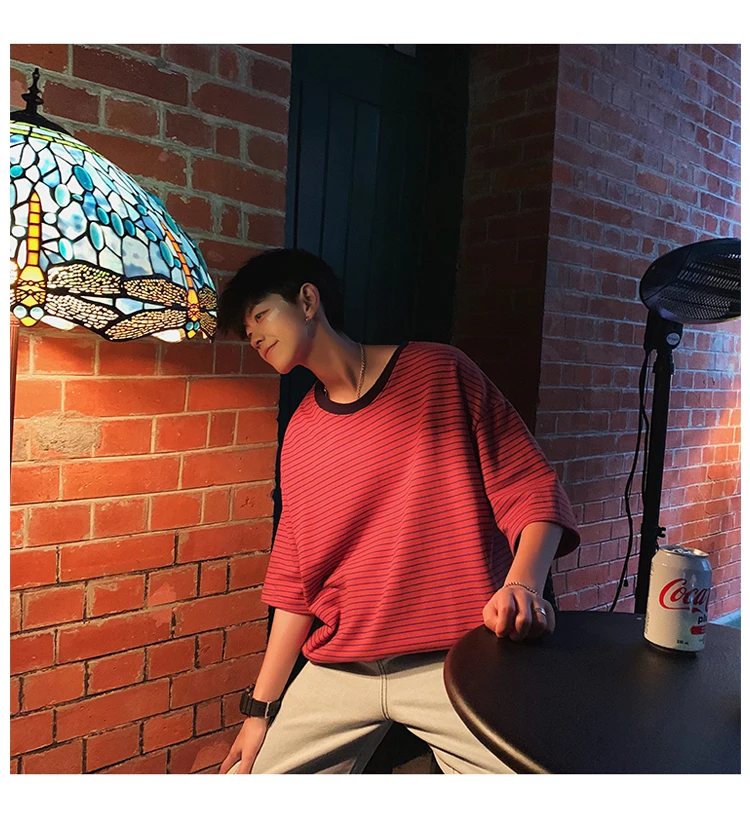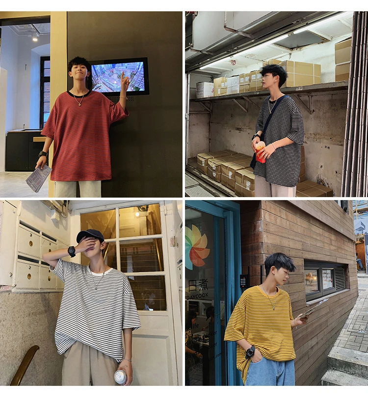 LAPPSTER Men Oversized Striped Tshirts 2023 Harajuku Cotton Tops Mens Colorful Yellow Tshirts Couple Streetwear T-shirts Tees