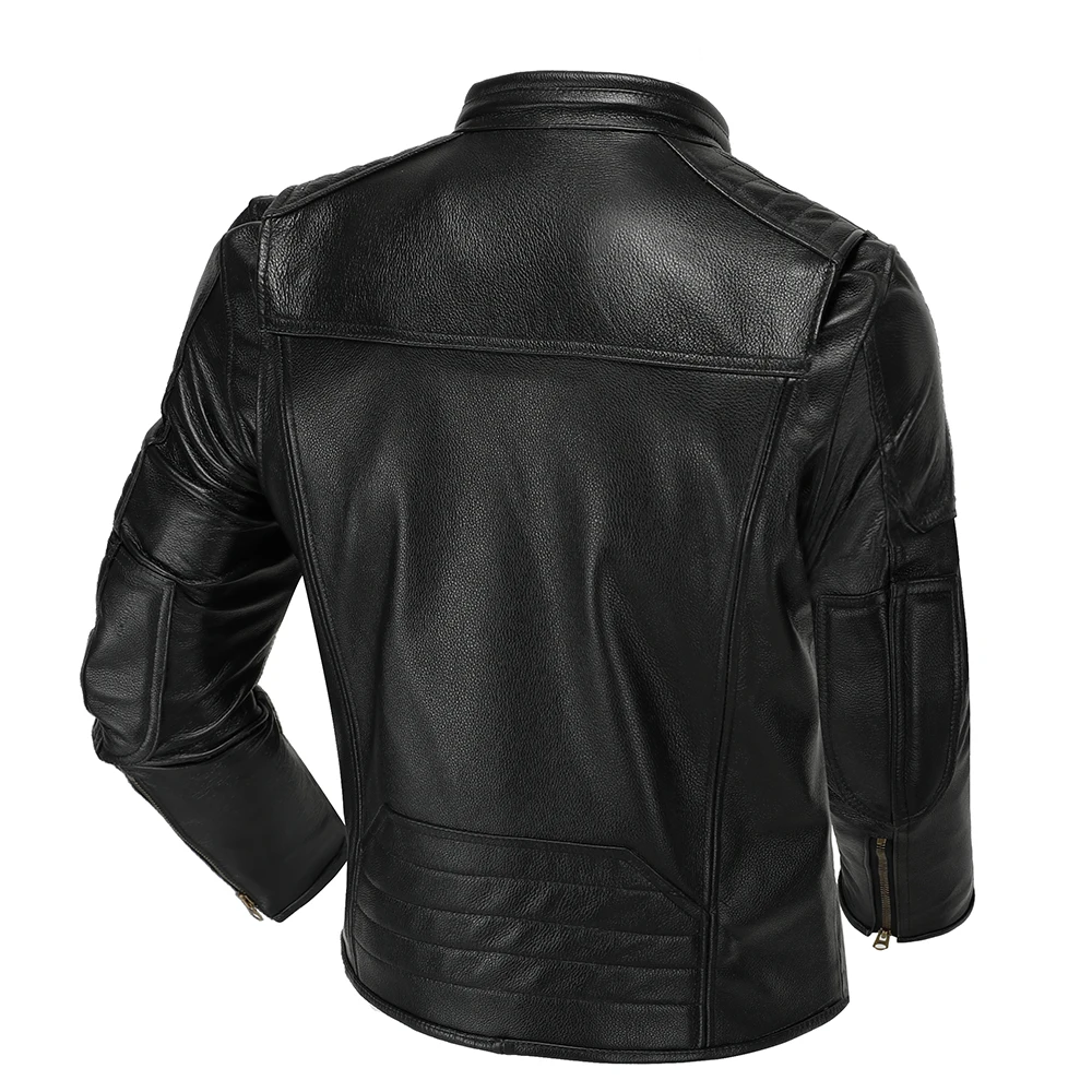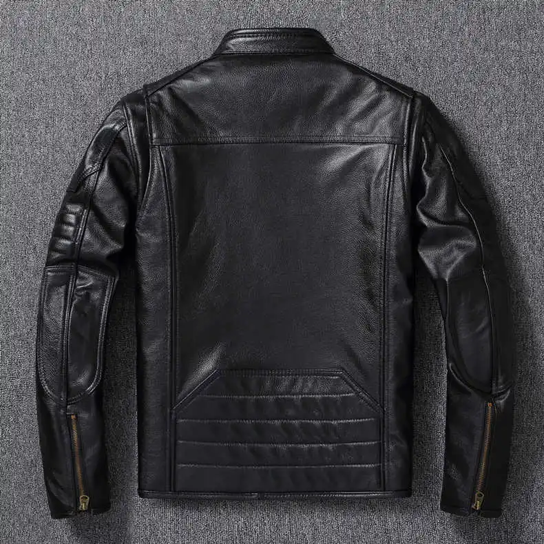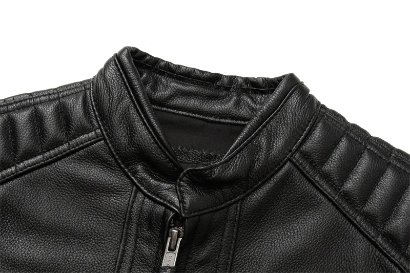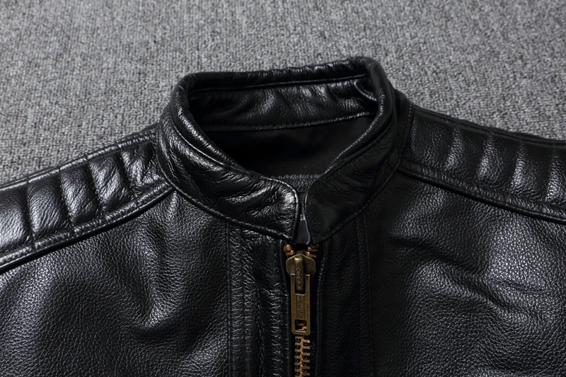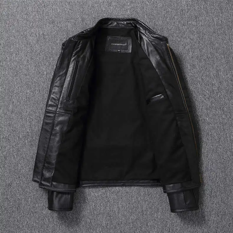 Men's Natural Leather Jacket First Layer Calfskin Stand Collar Motorcycle Jacket Retro Brown Cowhide Jacket Men‘s Biker Clothes