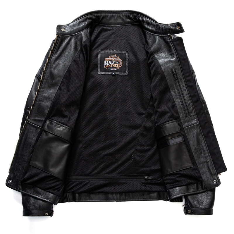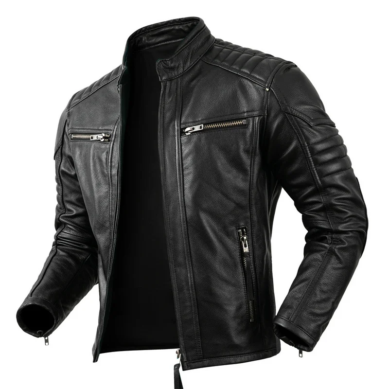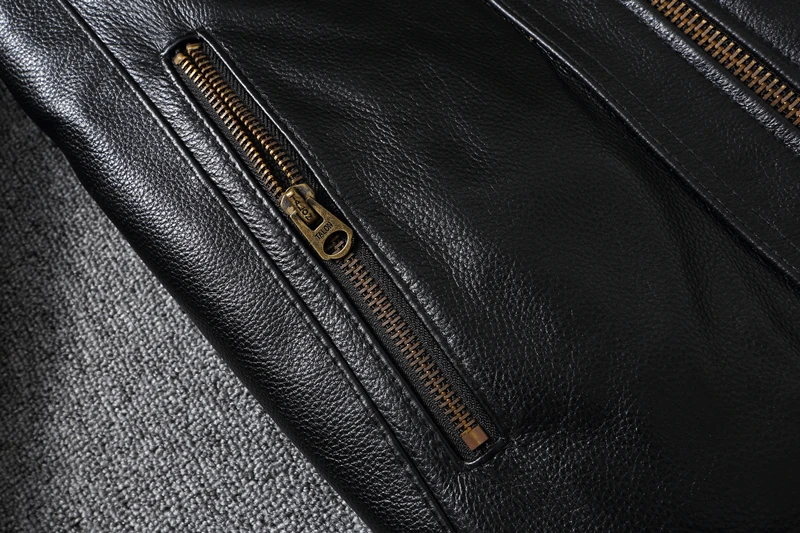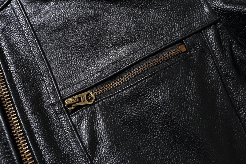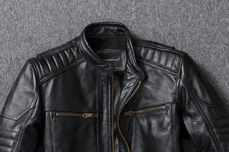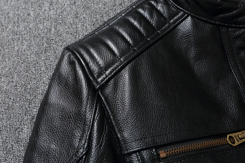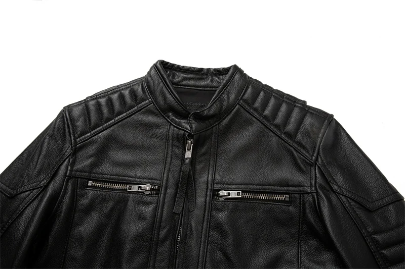 Men's Natural Leather Jacket First Layer Calfskin Stand Collar Motorcycle Jacket Retro Brown Cowhide Jacket Men‘s Biker Clothes