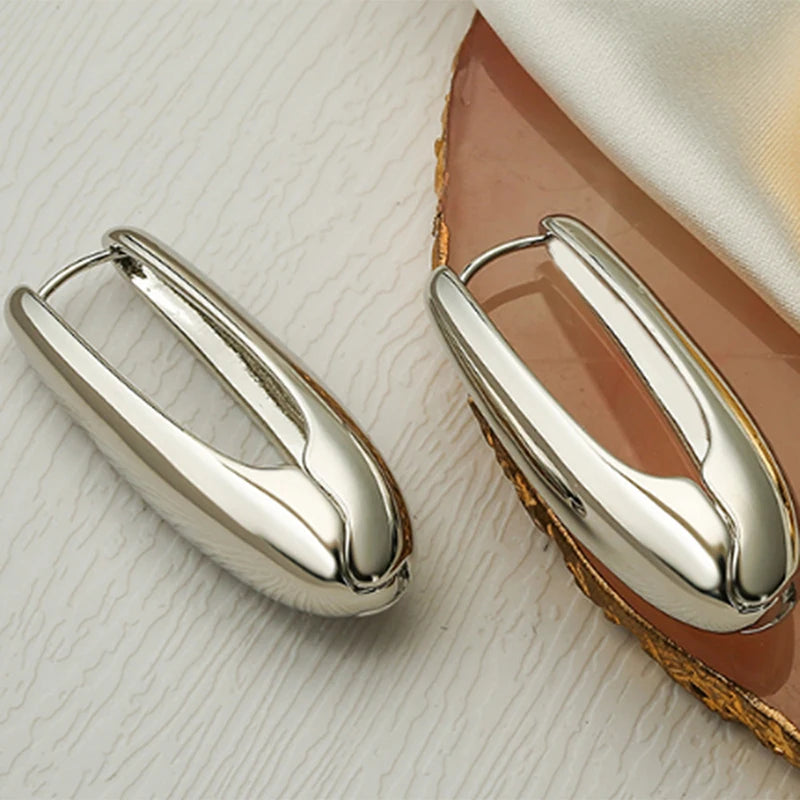 Stainless Steel Smooth Star Zircon Hoop Earrings for Women Girls Metal Chunky Sun Rhinestone Ear Buckle Punk Y2K Elegent Jewelry