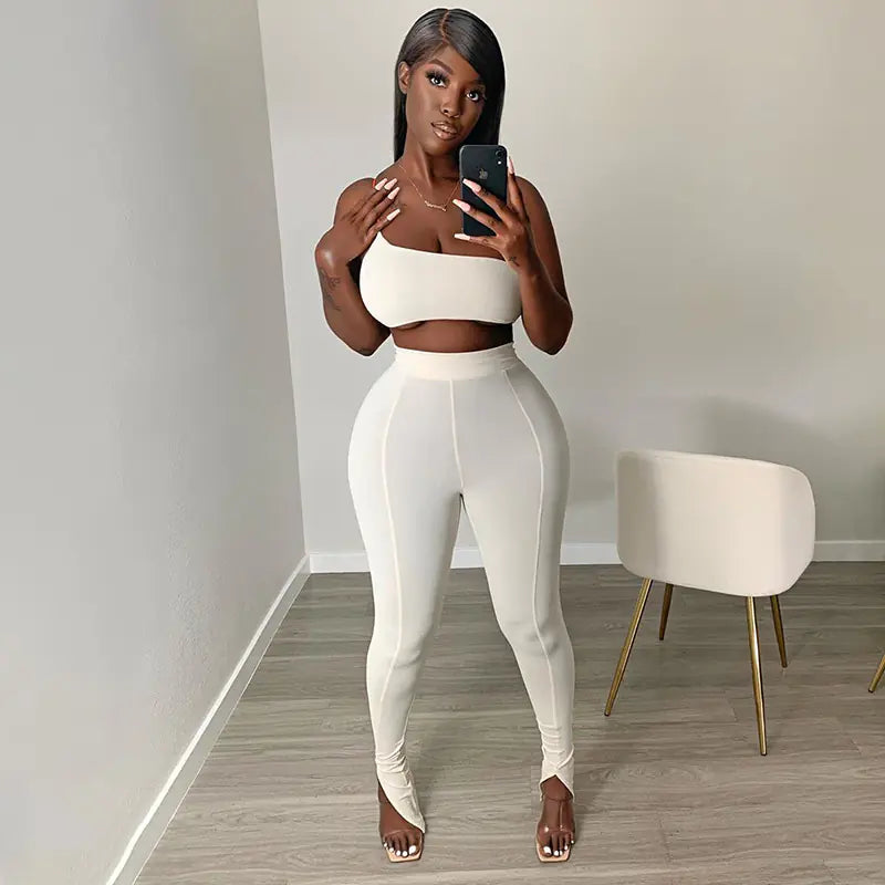 Step into the season in style with our Summer Women’s Casual Set. This stunning ensemble features a chic one-shoulder tank top paired with slim-fit pencil pants, creating a silhouette that flatters every figure. Crafted from premium milk silk fabric, this set ensures a soft and breathable feel against your skin, perfect for warm summer days. The irregular stitching and collage design elements add a modern touch to your casual wardrobe, making it versatile for both day and night outings. Available in classic white, this set comes in three sizes: S, M, and L, allowing you to find the perfect fit. The sleeveless vest top and stylish trousers are designed to keep you comfortable while enhancing your natural curves. Don’t miss out on this must-have addition to your summer collection! Check out the images below to see the exquisite details and how effortlessly this outfit can elevate your style.