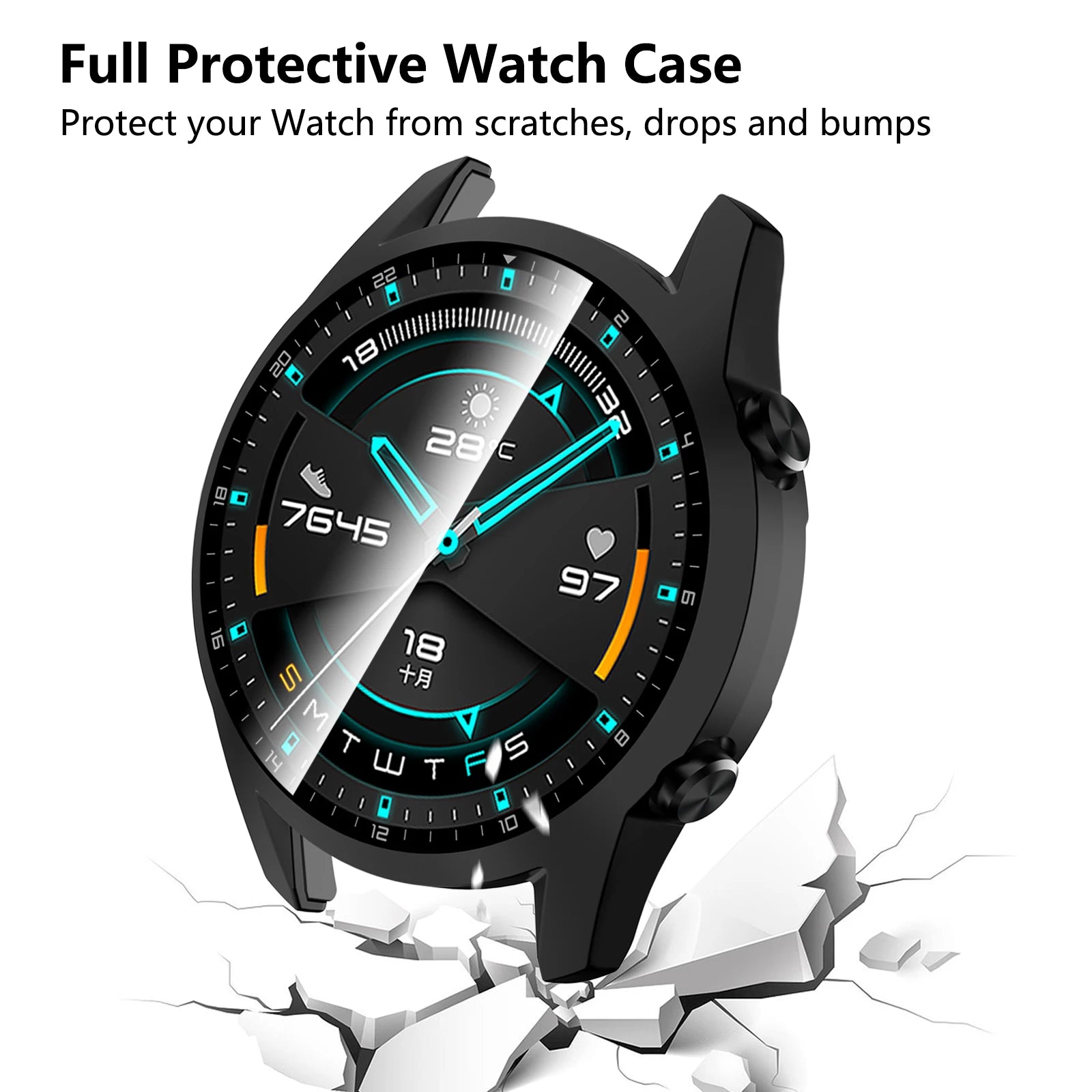 Tempered Glass Case For Huawei Watch GT2 46mm Cover Full Coverage Bumper Screen Protector For Huawei Watch GT 2 46mm Shell