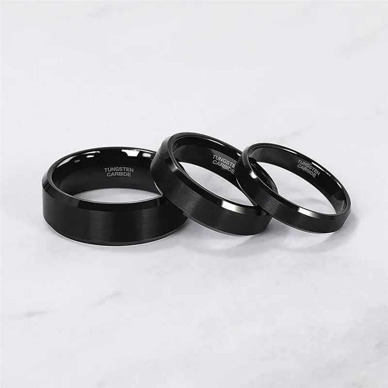 TIGRADE 4/6/8/mm Black Tungsten Carbide Ring Men Brushed Silver Color Wedding Band Women Engagement Rings For Male Jewelry