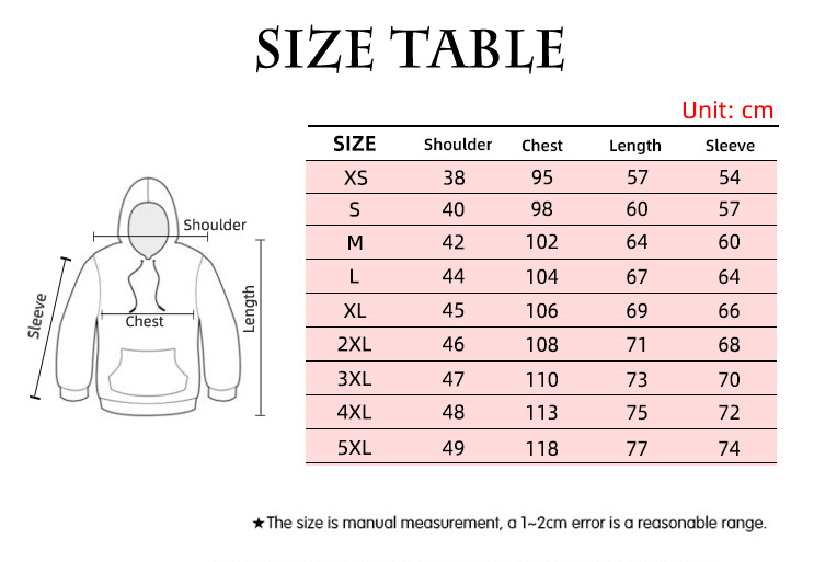 Embrace your style with the ultimate blend of comfort and fashion - our trendy, 3D digital printed hooded zip sweatshirt. Perfect for youth and designed for all seasons, this loose-fit pullover combines functionality with a touch of flair, making it a must-have in your wardrobe. Crafted from high-quality polyester fiber, this sweatshirt not only ensures breathability but also features an iron-free treatment for hassle-free maintenance. The round neck and long sleeves provide a cozy fit, while the vibrant printing adds an eye-catching element to your casual look. Available in a wide range of sizes from S to 5XL, you can find the perfect fit that accentuates your unique style. Our size chart is designed to help you choose wisely, ensuring that you look and feel your best. Please note that due to lighting and screen settings, the color of the item may vary slightly from what you see in the pictures.