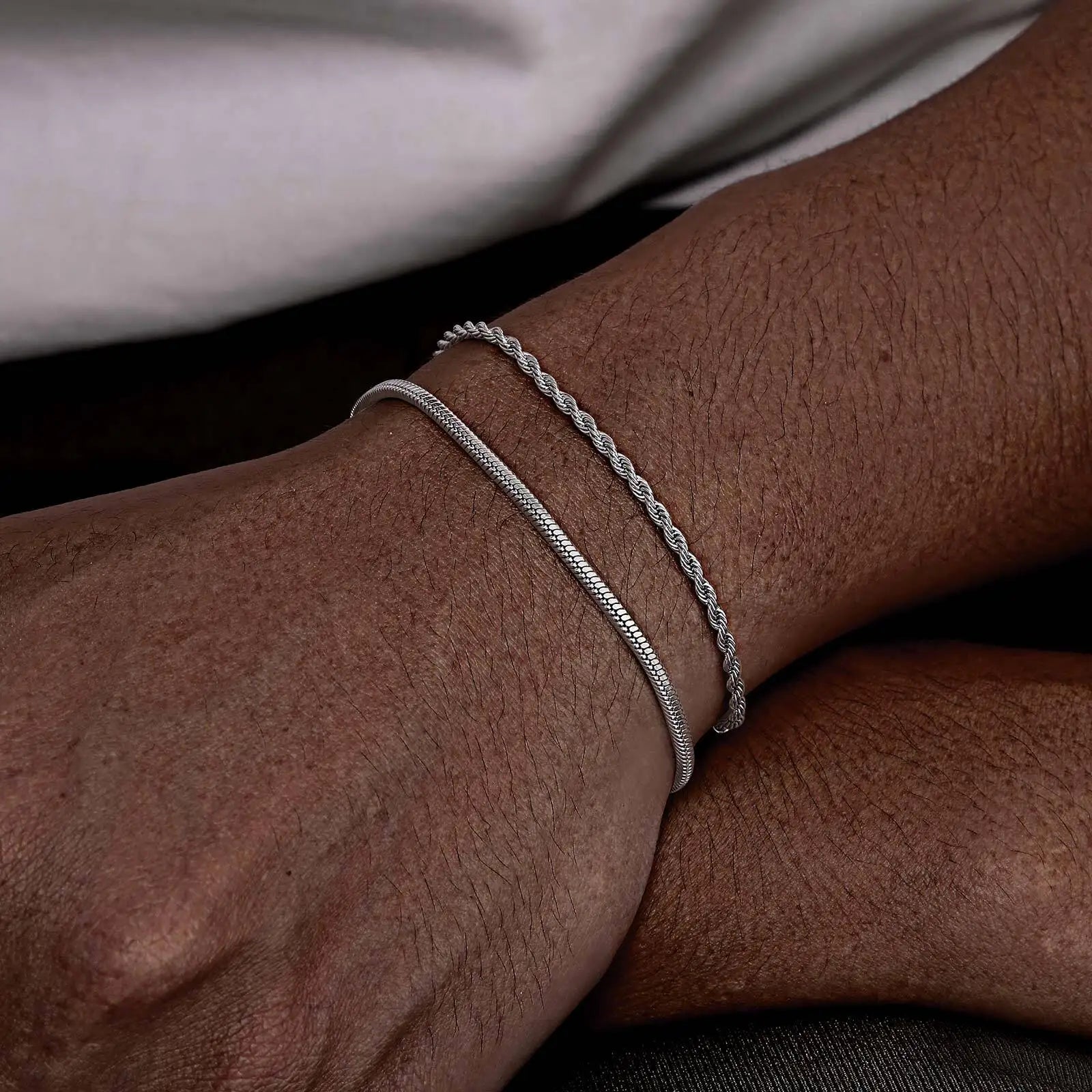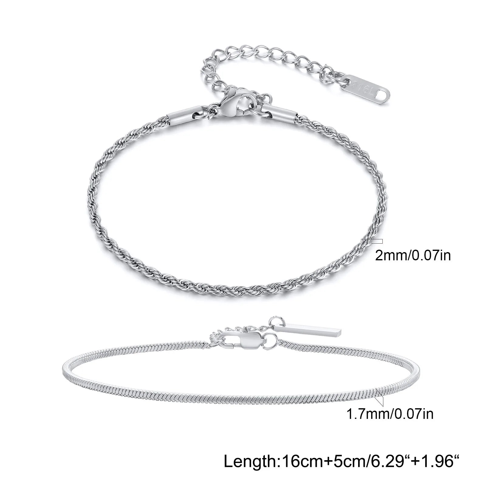 Vnox 2pcs/ Set Mens Chain Bracelets, 16cm-21cm Adjustable Twisted Rope Chain Bracelet, 21cm-24cm Steel Snake Links Bracelet
