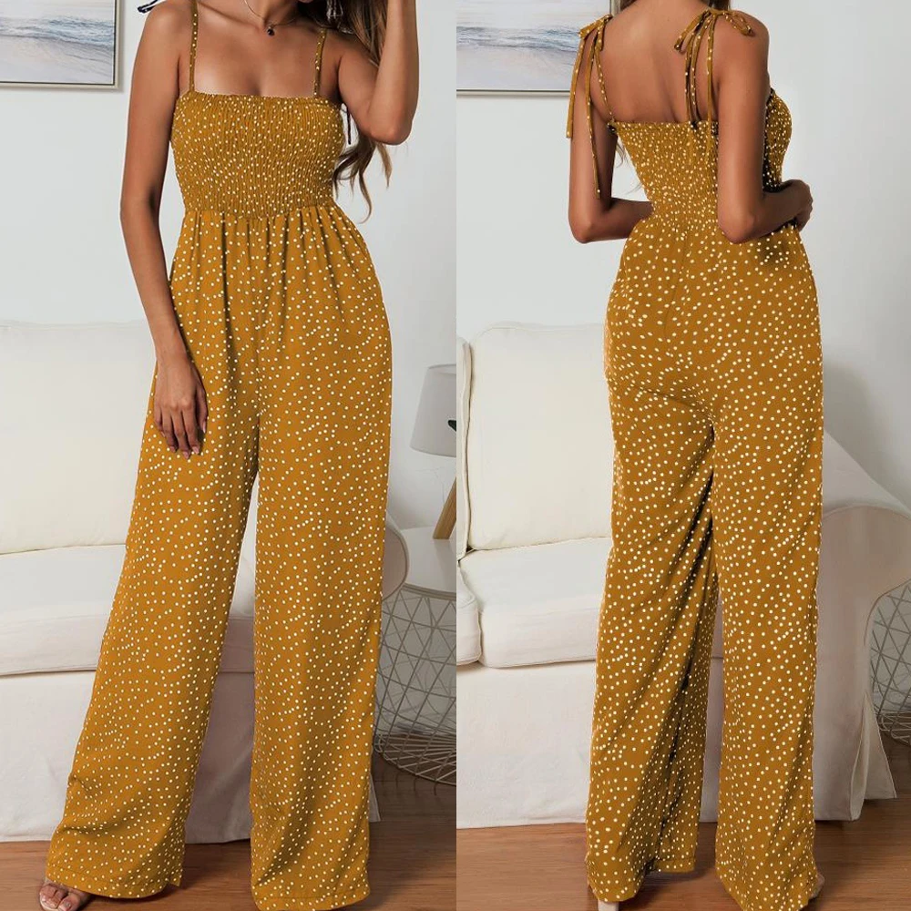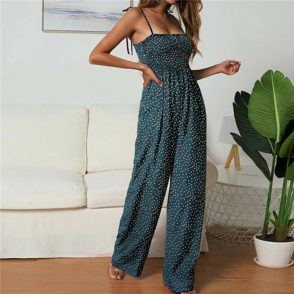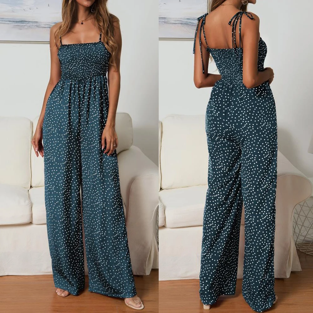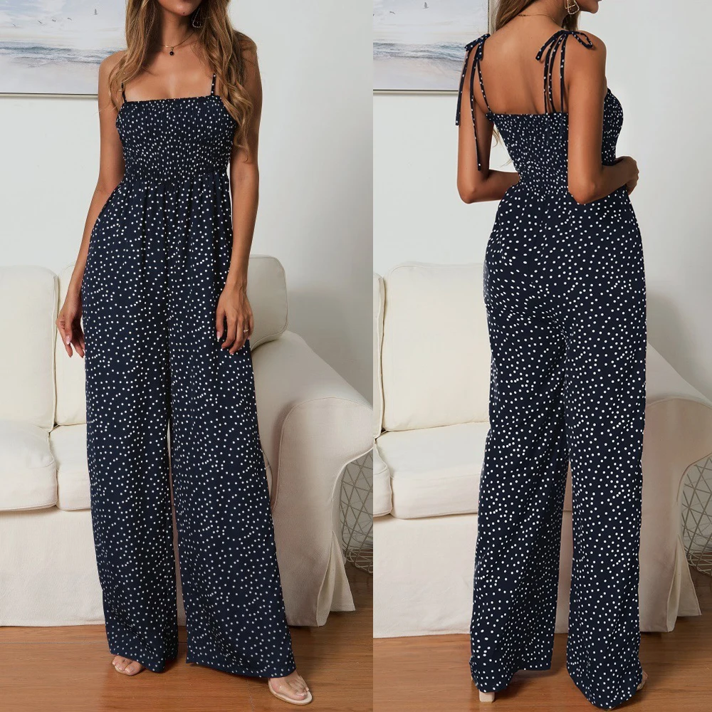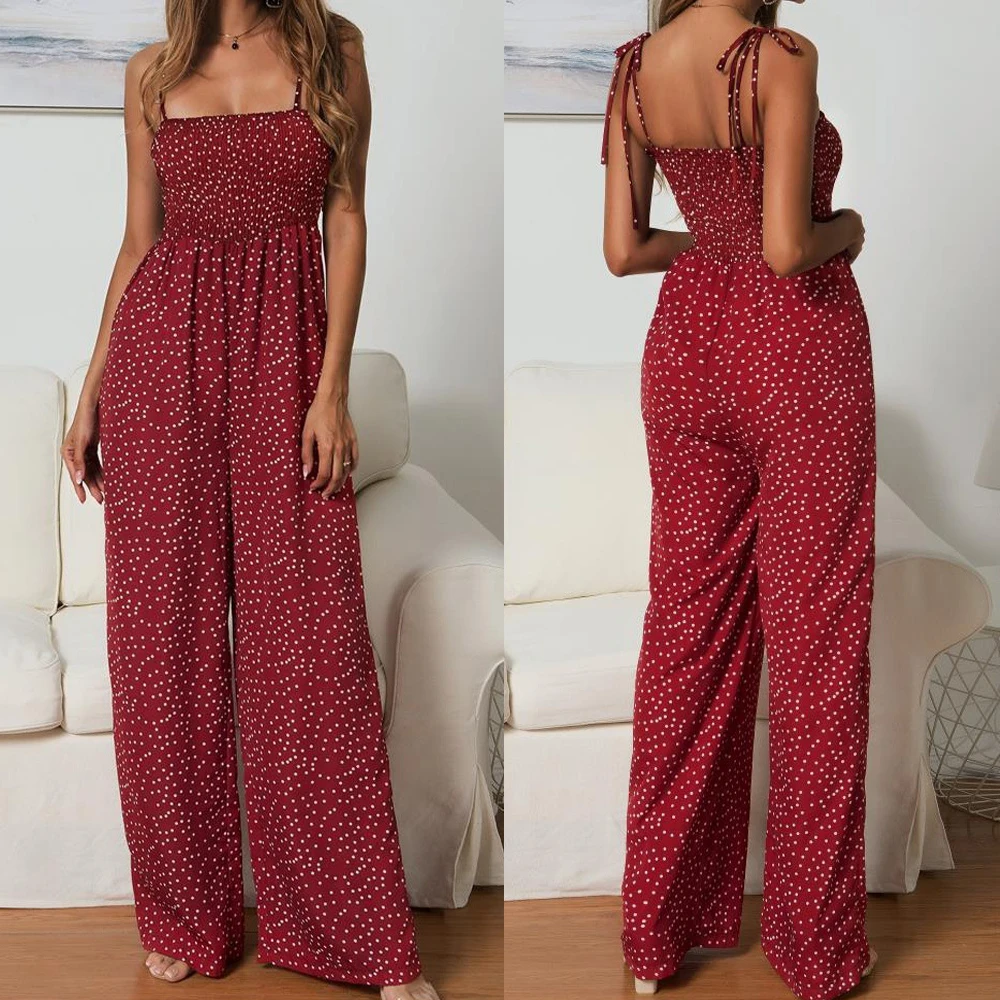 Women Bowknot Sleeveless Jumpsuit Summer Strap Backless Wide Leg Pants Trousers Jumpsuits Beach Polka Dot Suit Pants