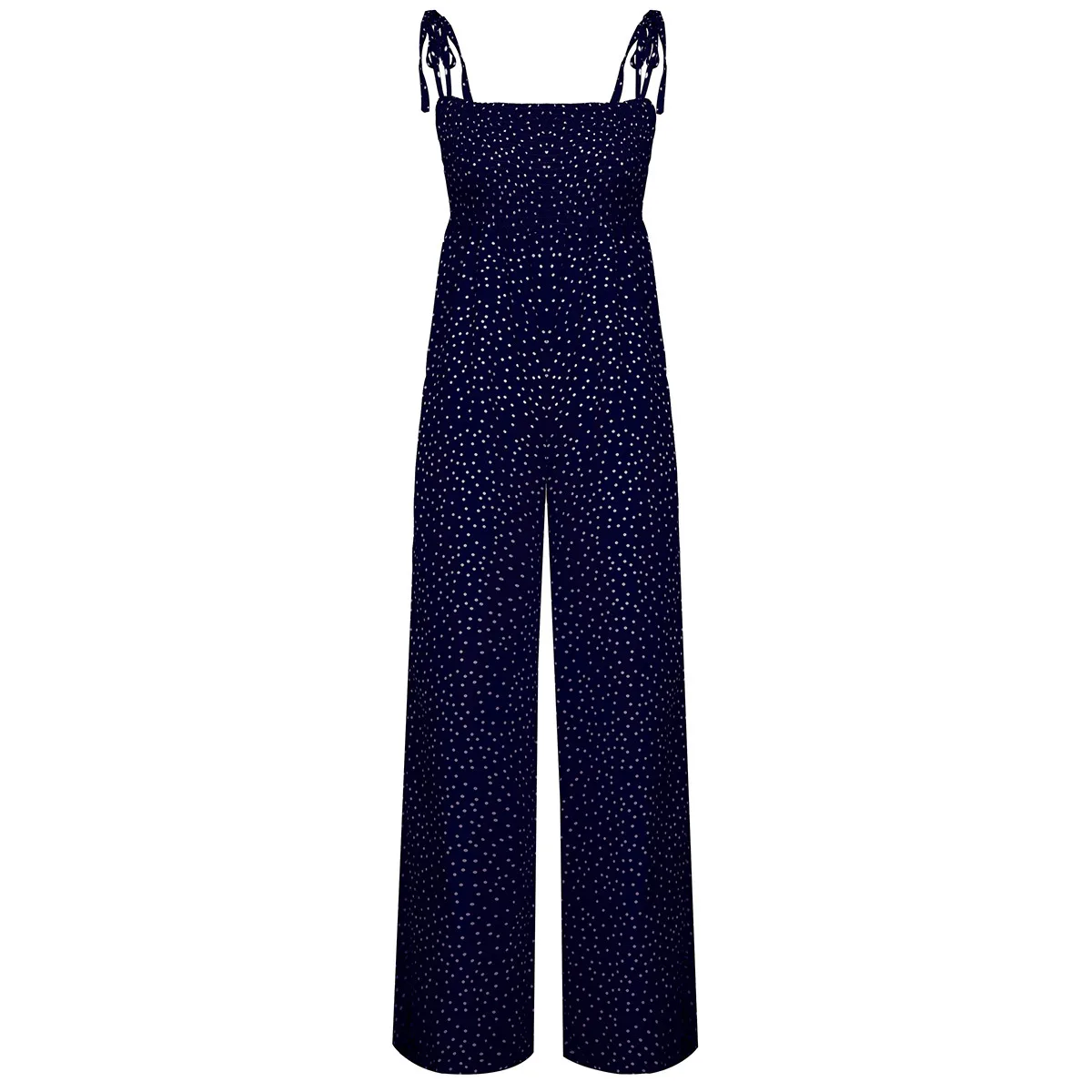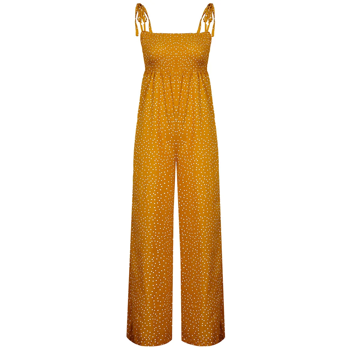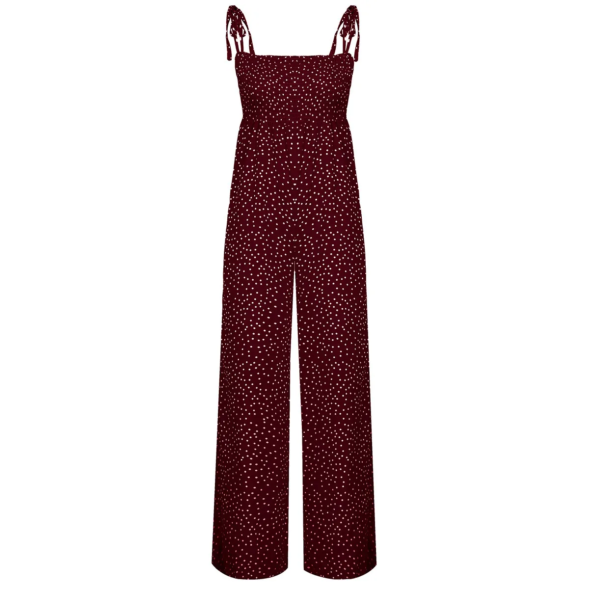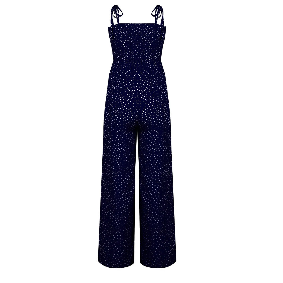 Women Bowknot Sleeveless Jumpsuit Summer Strap Backless Wide Leg Pants Trousers Jumpsuits Beach Polka Dot Suit Pants