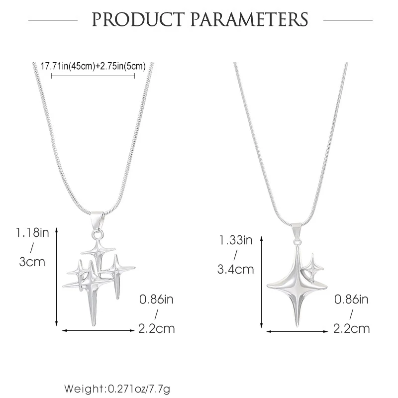 Y2K Simple Choker Necklace Four Pointed Star Necklaces Adjustable Crucifix Pendant Necklace Asterism-Necklace Jewelry